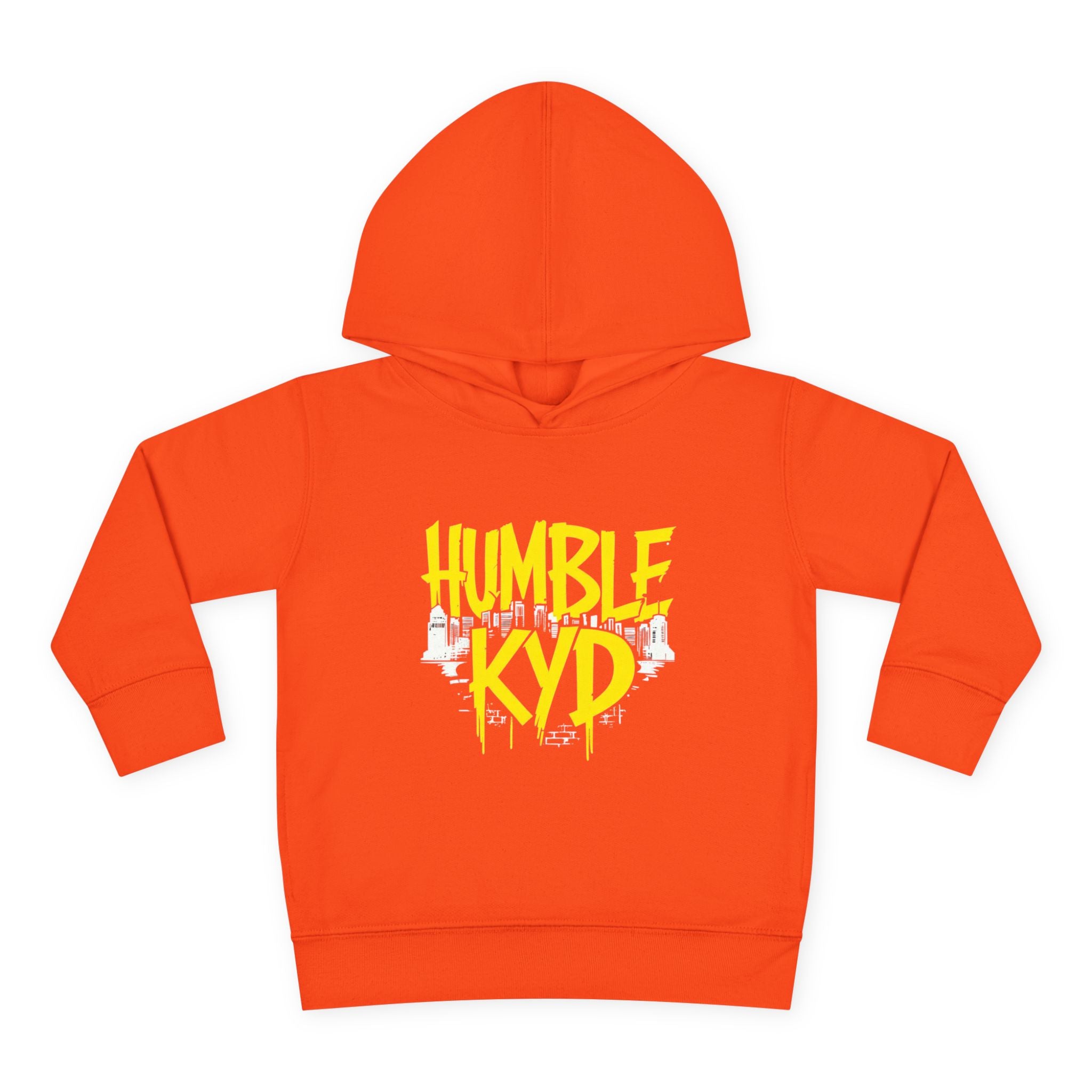 Bright, cozy, and full of personality — this toddler pullover hoodie brings playful street-style energy to little ones. The bold, graffiti-inspired graphic pops against the vivid orange fabric, making mornings feel lively and adventurous. Soft, medium-weight fleece keeps tiny shoulders warm while ribbed cuffs and a fitted waistband hold shape through playtime. Side pockets are sized for treasures: a snack, a small toy, or cold hands between runs outside. Built with reinforced stitching and a jersey-lined hood, this hoodie wears like a favorite from the first day and keeps comfort front-and-center as kids explore, learn, and make mischief.