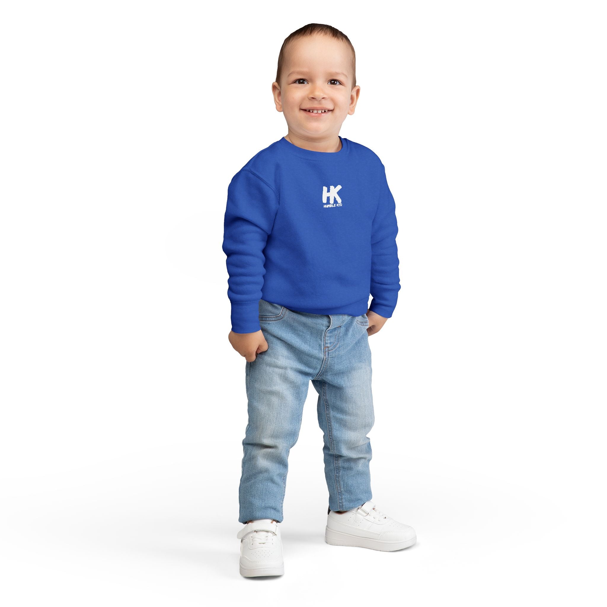 This Humble Kyd Toddler Sweatshirt features a streetwear logo design, perfect for the fall season. With a tear-away label for total comfort and no scratching, this medium fabric sweatshirt is ideal for children. Made from a blend of 60% cotton and 40% polyester, with coverstitched collar, shoulders, armholes, ribbed cuffs, and waistband. Suitable for casual wear and could be a great addition to a toddler's wardrobe during the colder months.